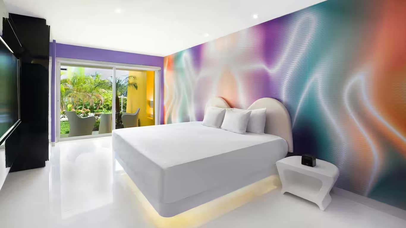 The 153 Trendy Garden View rooms at Temptation Cancun Resort feature one king size or two double beds, with an intimate living area including a 48” LED T.V., a full bathroom with separated toilet, one washbowl and a spectacular rain shower. Each of these 30.96m2 rooms boast a spacious balcony or terrace overlooking our perfectly groomed gardens. These rooms are the perfect choice for those seeking state-of-the-art amenities and unique accommodations.